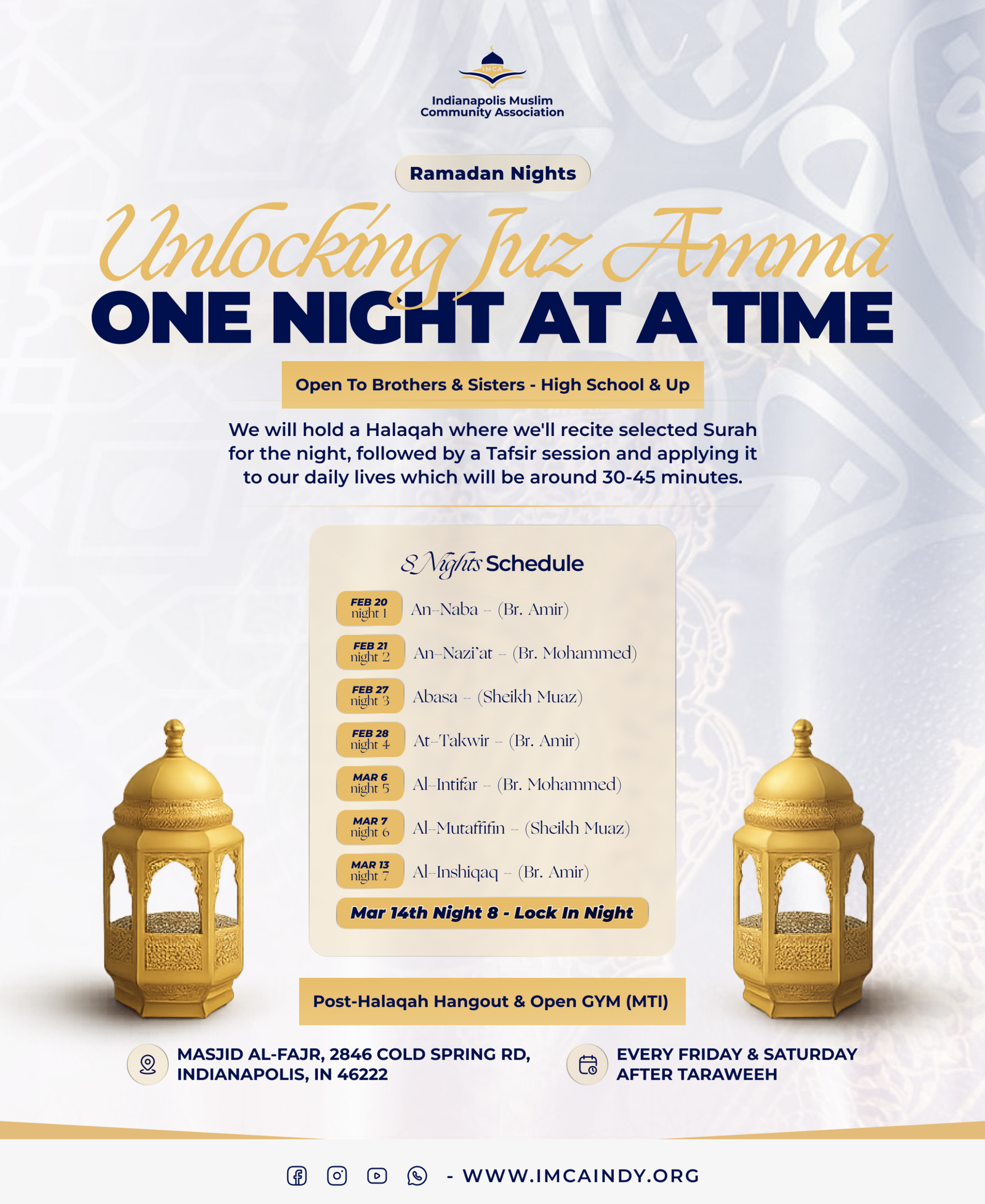 Deepen your understanding of Ramadan with insightful sessions on spiritual growth, fiqh, and practical preparation. Join us and make this Ramadan your most meaningful one yet!